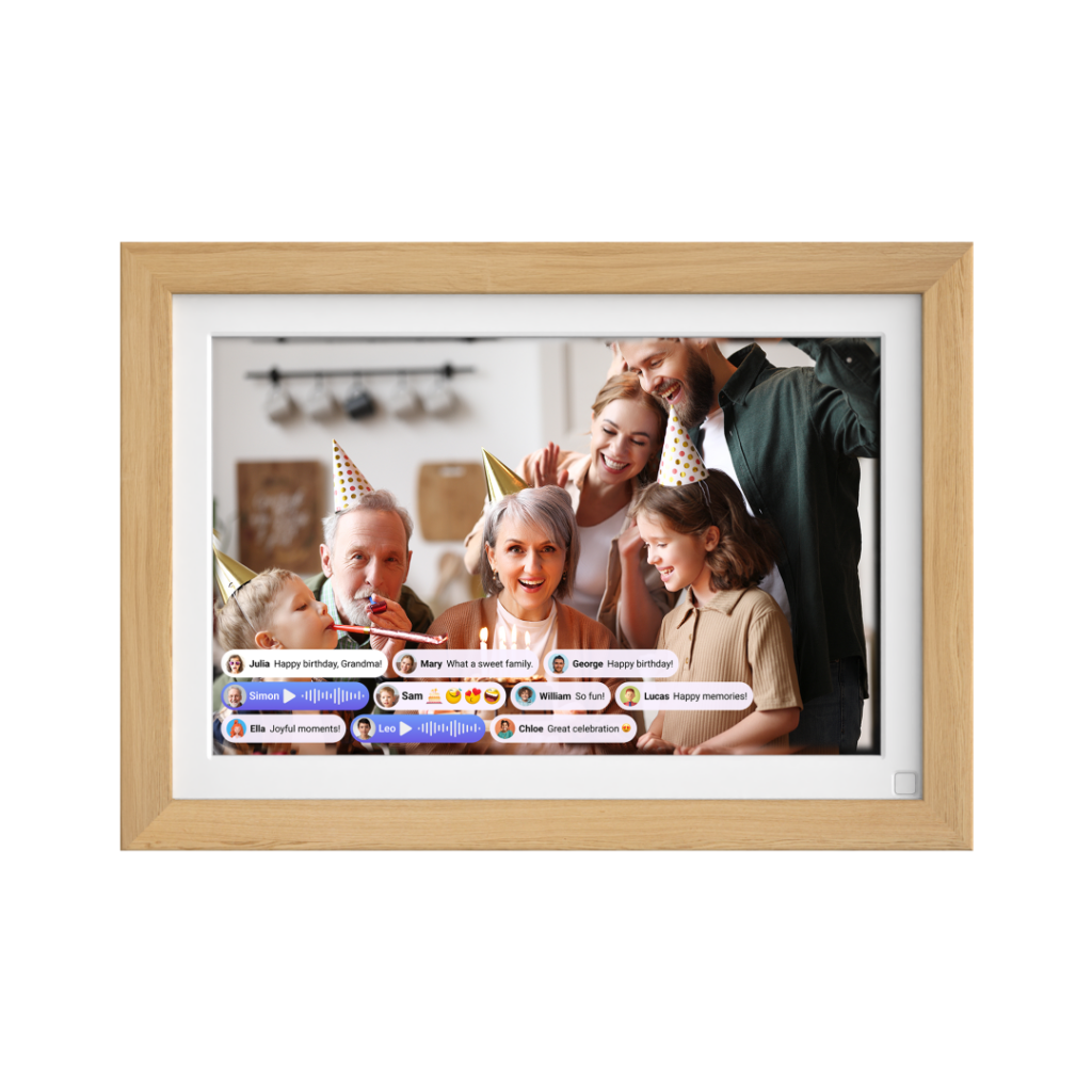 Crafted to foster stronger connections among loved ones, the Frame seamlessly synchronizes with other myFirst devices, showcasing a stream of content shared by family and friends.